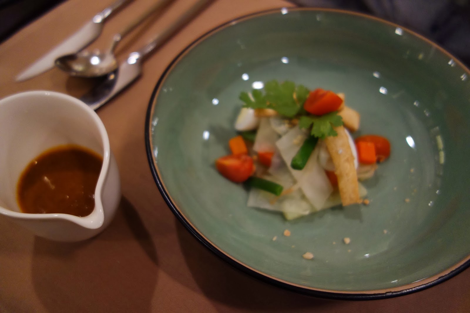The meat main course on the lunch menu was pork neck. The waitress offered as a substitute the red Thai curry with fish and crustaceans, a dish that can be ordered individually for lunch. This turned out to be a big portion. Again too salty to enjoy.